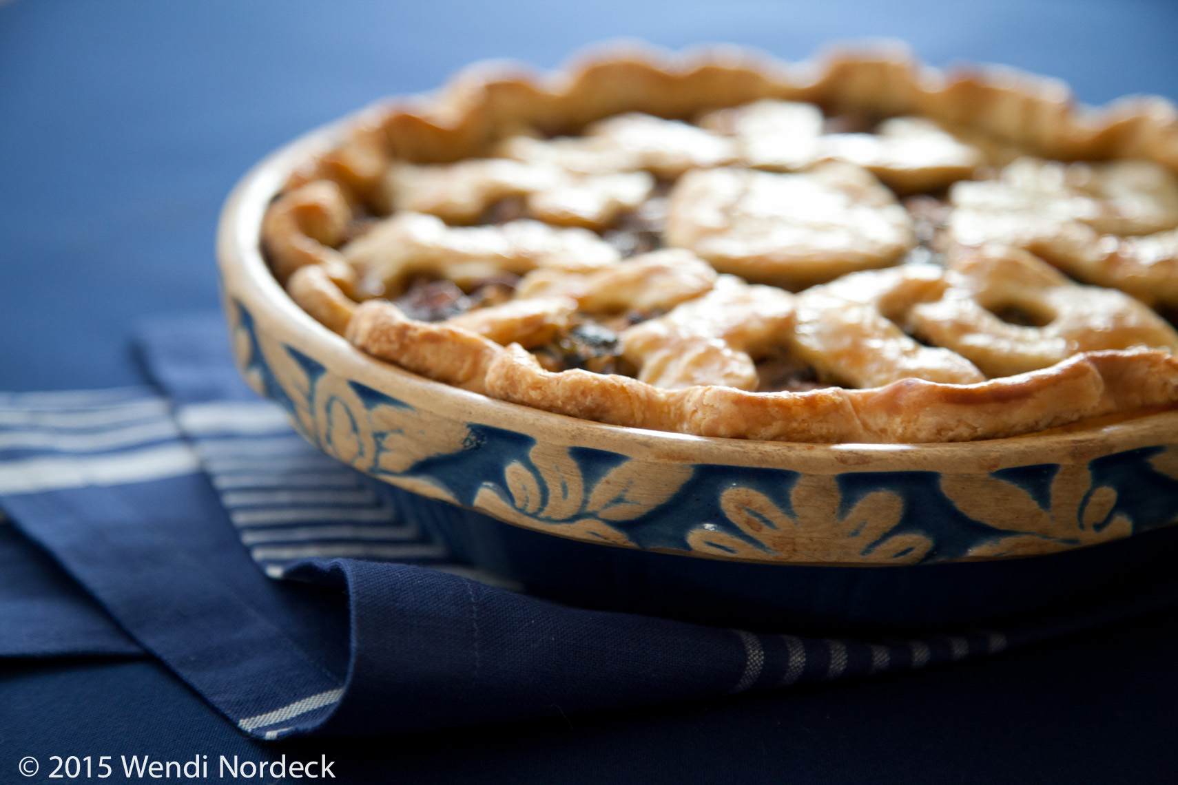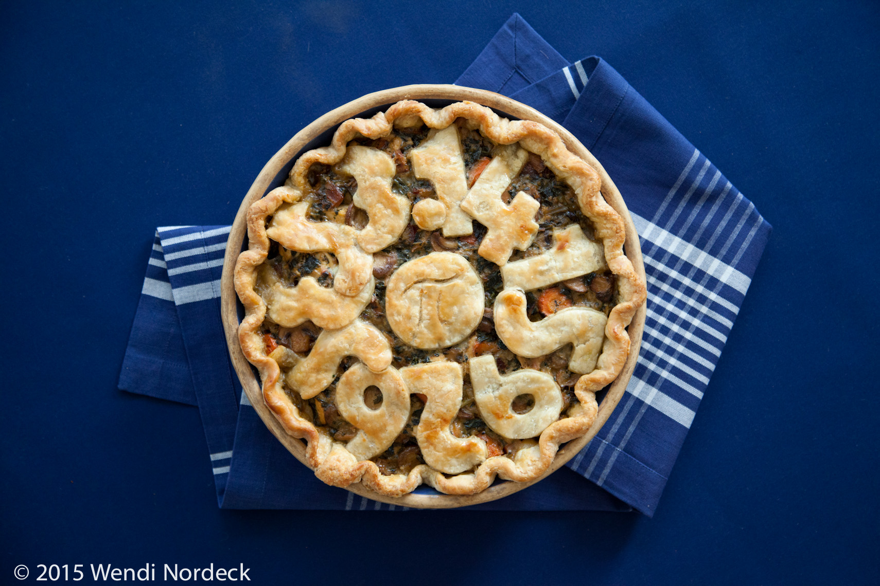 We’d happily make and eat any pie on Pi Day, but we wanted to have a little fun with it by decorating the top with cut-out numbers. That means we needed to make a pie that could accommodate a top crust, so custard and cream pies were out. We could do fruit pie with fresh apples or frozen berries, but then we remembered: Saturdays are always insanely busy. Why not kill two birds with one stone and have pie for dinner?